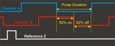 A perfect Encoder should have a pulse output pattern like the one shown to the left. When Channel A is on, Channel B should be on 50% of the time and off 50% of the time. The Talon Encoder Checker will display the ratio of time on and off for the measured Channel. This is useful for tuning, especially in high speed applications.
