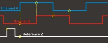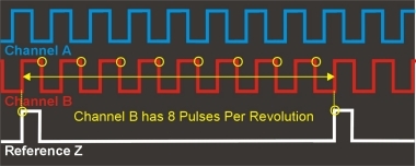 When Channel A changes state, the meter measures the voltage of the Channel B pulse. When reading a reference signal the voltage measurement is taken after a set period of time has elapsed since the signal changed state. This meter also provides Min/Max voltage of pulse. This is useful when confirming the Encoder has enough output for the device it is connected to.