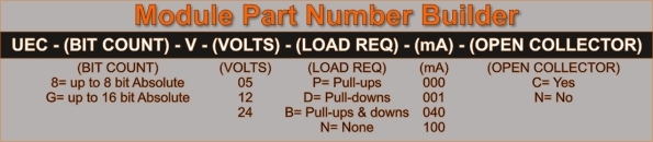 Modules = As delivered UEC will test 5V encoders with no load. Modules available for higher voltages and/or current load. See chart below: